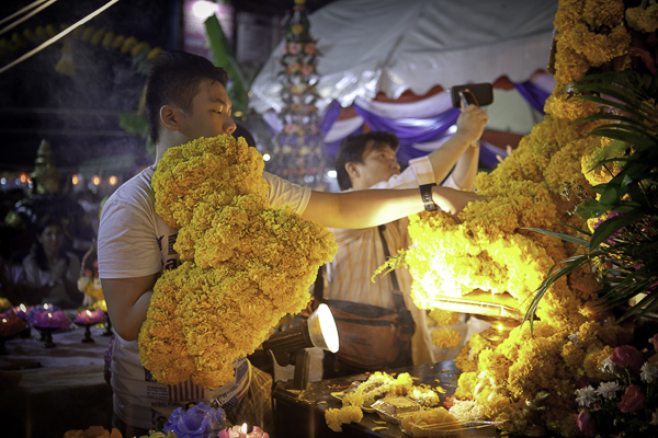 I happened to pass by the Pikanet shrine in Huay Kwang on Monday and witnessed an on-going celebration of the Hindu god’s birthday. The Huay Kwang shrine is one of the most famous Pikanet shrines in Bangkok. The area is home to many worshipers who are in the arts and entertainment business. They believe that Pikanet will bless them with good fortune and success.