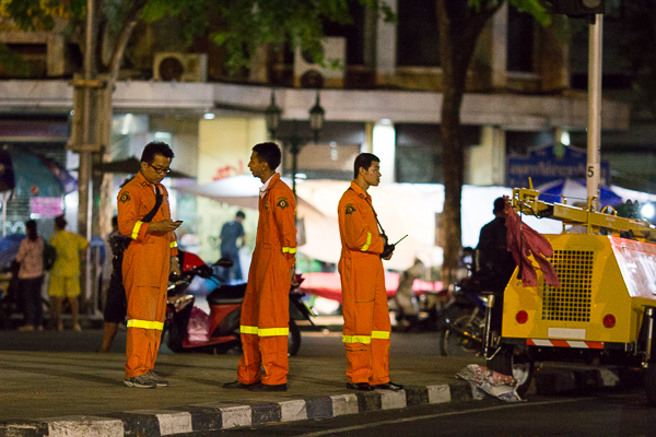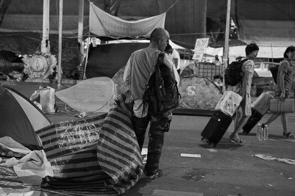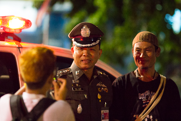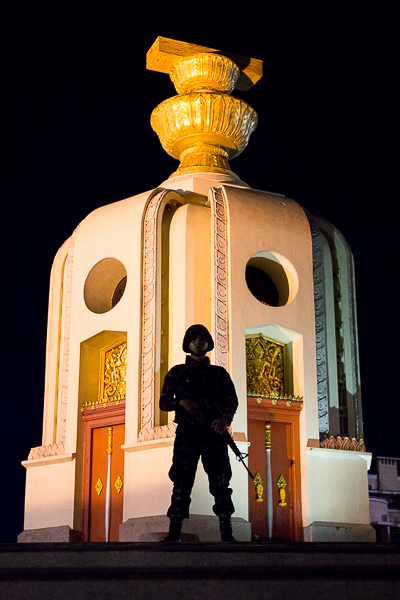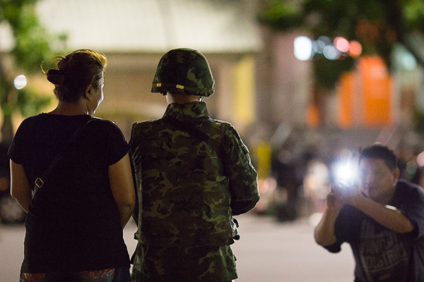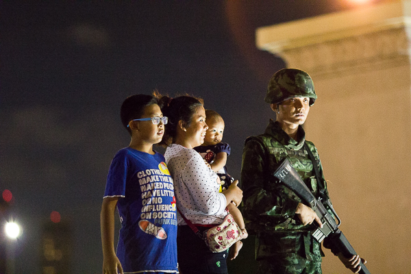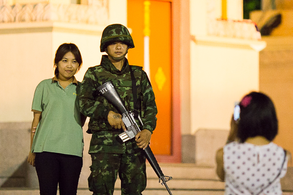 Protestors who have been camped out for months had begun to pack up and leave after being ordered to by the police. Despite the tension in the air and gravity of the political situation, many Bangkokians could be seen taking a stroll around the monument – and even taking selfies with some of the soldiers and police officers who were standing guard.