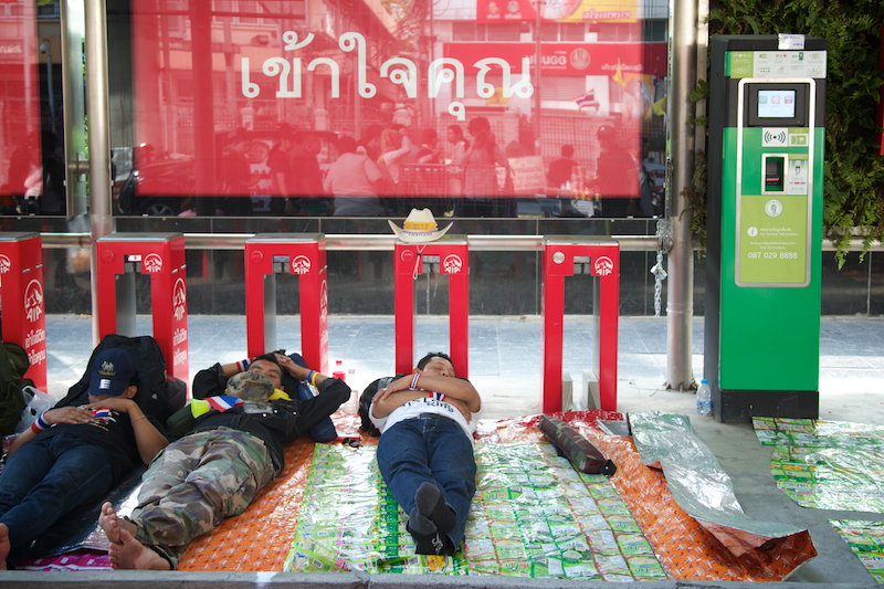 As the “Bangkok Shutdown” demonstrations continue throughout the capital, Coconuts photographers Kajonsak Intarapong and Zanyasan Tanantpapat remain in the field to document the faces and places. These photographs are from Day No. 3, between Asoke and Ratchaprasong intersections.