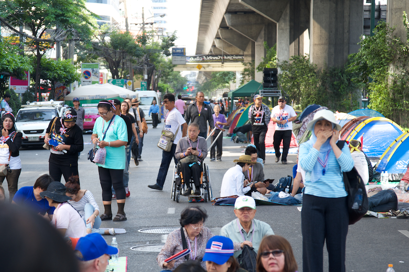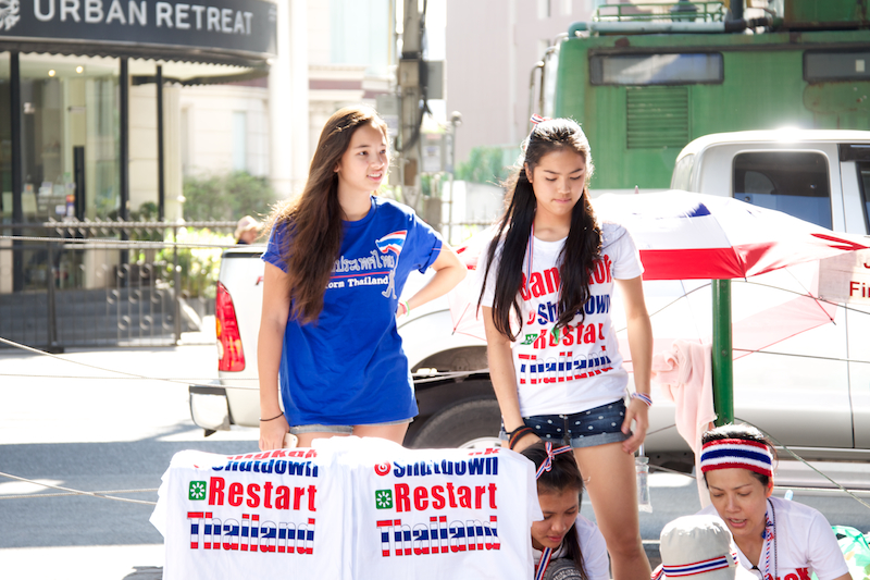 As the “Bangkok Shutdown” demonstrations continue throughout the capital, Coconuts photographers Kajonsak Intarapong and Zanyasan Tanantpapat remain in the field to document the faces and places. These photographs are from Day No. 3, between Asoke and Ratchaprasong intersections.
