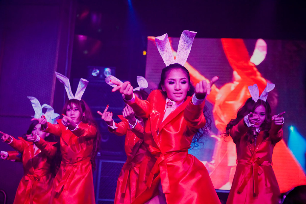 Dozens of sexy bunnies were handing out shots prior to the main event, when all eyes were on eight Playmates who performed on stage, teasing and pleasing the crowd with their sensual shows.