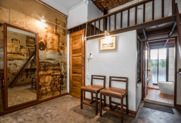 Instead of turning it into a hostel, with many beds in one room rented for cheap, they aimed for something more. They redecorated each of the rooms to preserve the memories they cherished of the former business. They painted images that spoke to the district’s past as a shoemaking hub on the walls and placed their old wooden shoe models on shelves. They hung up black-and-white family photographs. The three rooms – 42, 44, and 46 – are named after the shoe sizes the business most often produced. In these, they stripped the walls down to highlight the aesthetic of old shophouses.