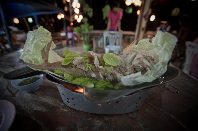 Pi Anek has been fishing for 20 years, is still fishing every day, and is not afraid to eat the fish he’s catching. “I have to try eating the fish before I could sell them. I cannot smell any oil from the fish. I am more concerned with the chemical sprayed to clean up the spill and its effects on marine life.”