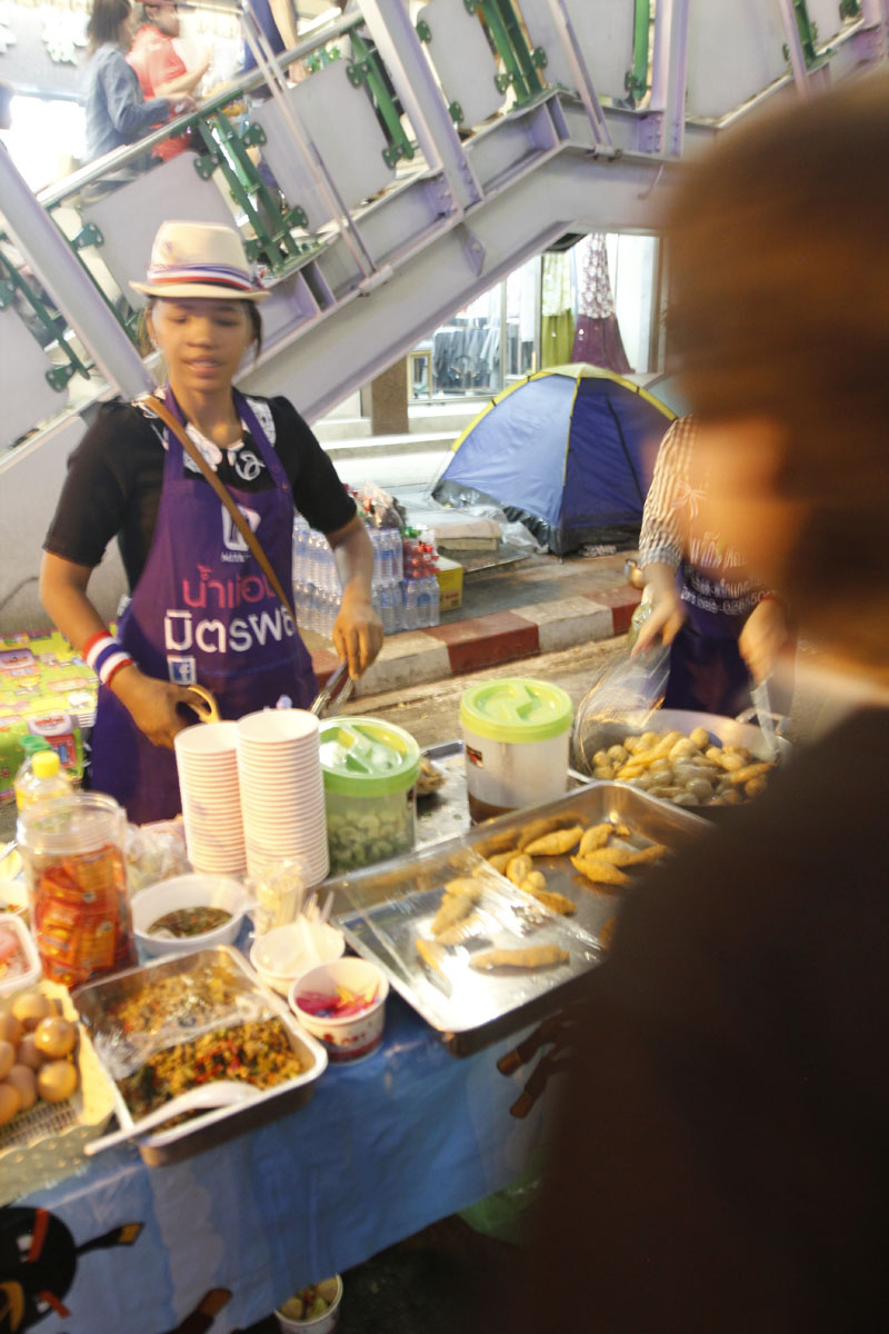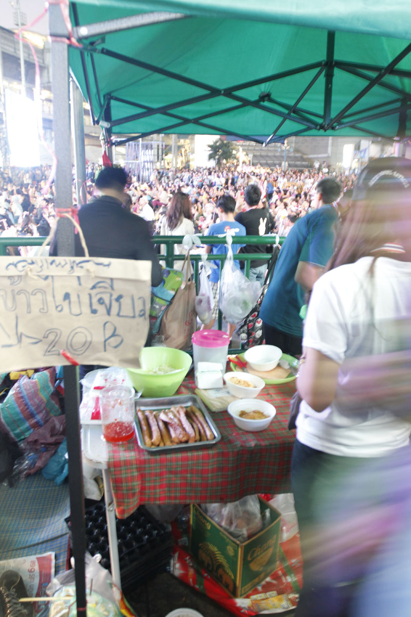 Other vendors see the protests as a unique business opportunity rather than a way to do their part in reforming the current government. Toey, a middle aged vendor from Udon Thani, usually sells her Isaan specialties on Lower Sukhumvit Road, often at Nana, but she moved to the Asoke protests in order to capitalize on the crowds’ hankering for catfish, som tam and barbecued meats. “I’m not protesting, I came to sell only,” she said. “I don’t like [the protests].”