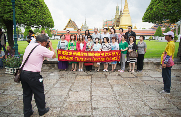 But while shopping is a serious pastime for the Chinese in Bangkok, the most popular attraction in the capital would have to be the Grand Palace. Virtually every tour group operator includes a stop as part of his or her itinerary. All over the Palace grounds, Chinese tour guides hoist up distinct banners and flags to help prevent anyone from getting lost among the masses. Augmenting this strategy, many Chinese wear matching hats and t-shirts to help further distinguish themselves from rival tour groups. Cameras and iPhones abound as everybody snaps up as many images as possible, hoping to lock in the moment.
