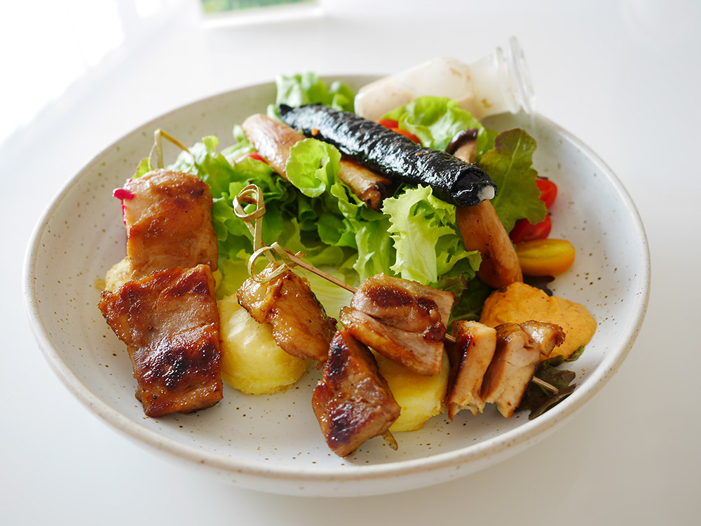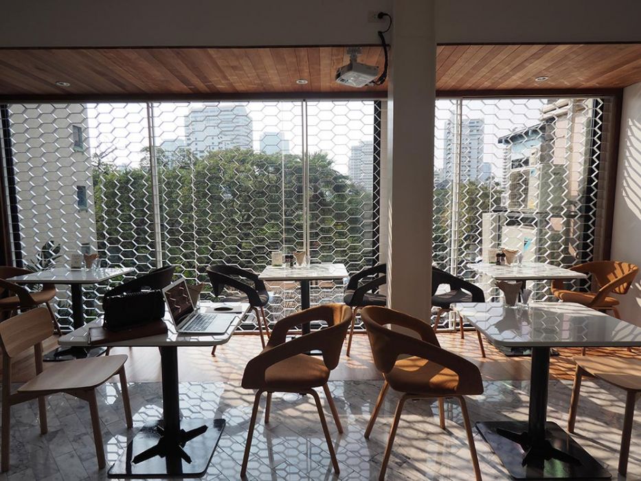 Pick a seat by this window for a mostly leafy view with just a tiny peek of the high-risers in the distance, then order from their selection of fusion comfort food. We like to start with their Skinny Sumo Salad (300 THB), which tosses chicken yakitori, tempura tofu, and seaweed roll with kimchi and cheese, in a ginger-sesame dressing.