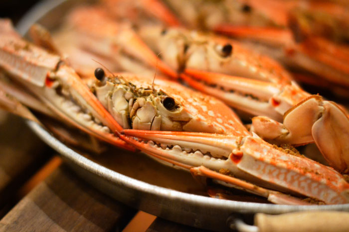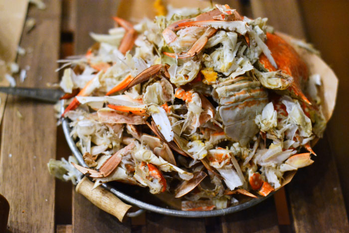Now let’s talk crab. It’s THB700THB for a kilogram, which adds up to about four medium-sized crabs. The variety of crab they’re serving is called the “blue swimmer crab,” and it’s a staple in this part of the world. It’s a good thing they aren’t importing crabs from the United States, because that would drive the price up to unreasonable heights. Truth is these Thai crabs are remarkably close in flavor to the Maryland (Atlantic) Blue crab. The meat is sweet (though far less sweet than the revered Pacific Dungeness), but where it falls short is in the preparation.