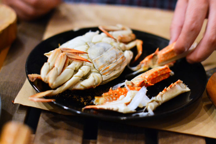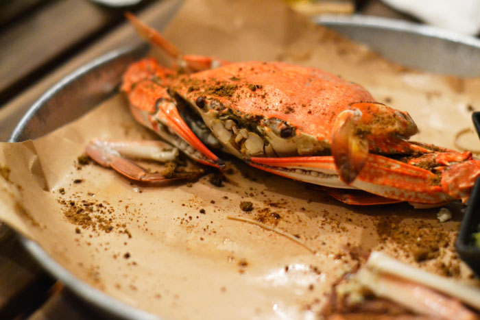 Craberman skimps on the seasoning. Normally a generous portion of Old Bay is sprinkled, slathered and caked on as the crabs go into the steamer. The salty and zesty mix almost turns into a paste that coats the crabs after cooking, and they’re served this way to the table. At Craberman, you have the option of getting your crabs done in a “secret” seasoning (Wouldn’t it be helpful to tell at least give us a clue what to expect? We’re trying to be authentic here, right?) that resembles Old Bay, but the amount used is meager at best. I ended up resorting to the spicy green seafood sauce that can be found at any seafood restaurant in Thailand instead of enjoying the tart and acidic zing of proper seasoning.
