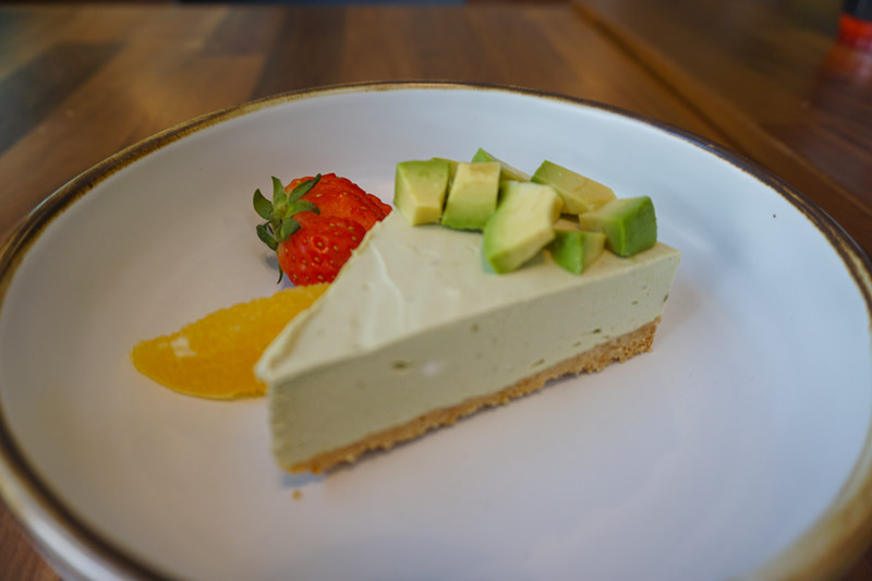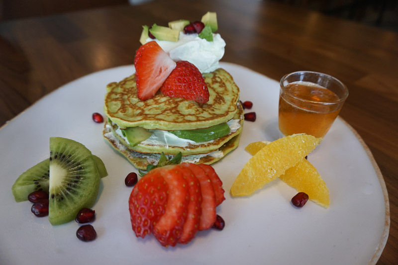 For dessert, we were excited to try the Avocado Cheesecake with Avocado Sauce (THB250). The cake is creamy and sweet at just the right amount and tastes even better when mixing it with the fresh fruit on the side. My colleague enjoyed her Avocado Pancake (THB345), which we had to wait 15 minutes for because they freshly mix and cook the pancakes for every order. We were impressed that the stack was held together by avocado whipped cream. Yes! The avocado-fused pancakes are fluffy and served with a generous amount of fresh fruit. They are delicious and memorable and well worth saving some space and waiting a few minutes for.
