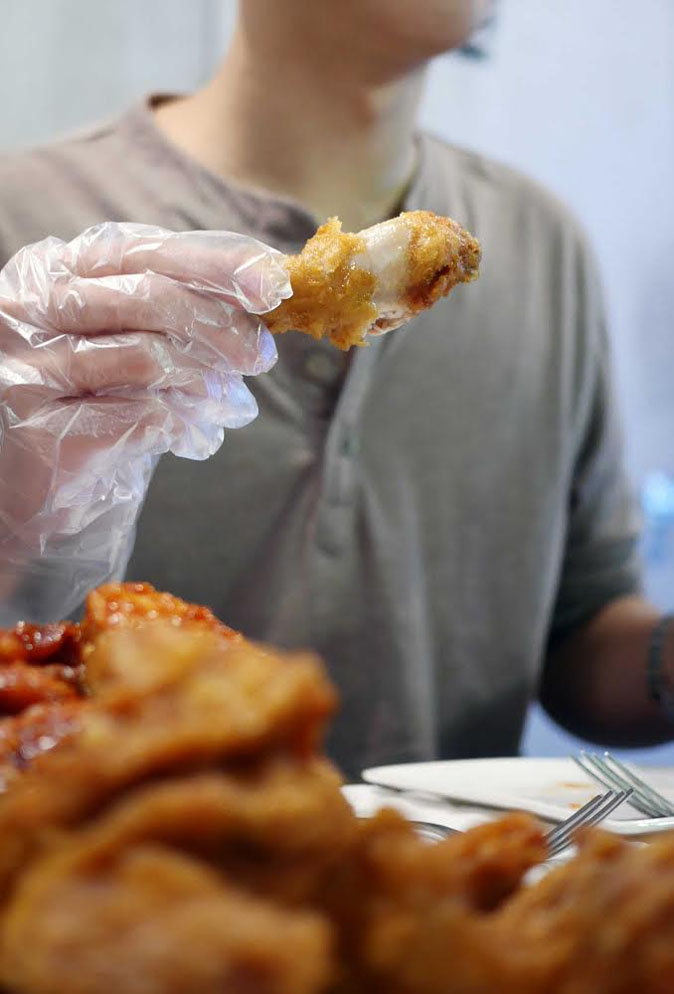 Instead of using a pair of fork and knife, you are encouraged to eat with your five fingers, and that is made possible (and hygienic) with a handy disposable plastic glove, handed out to every customer at Kyo Chon. Trust me, the chicken tastes better this way.