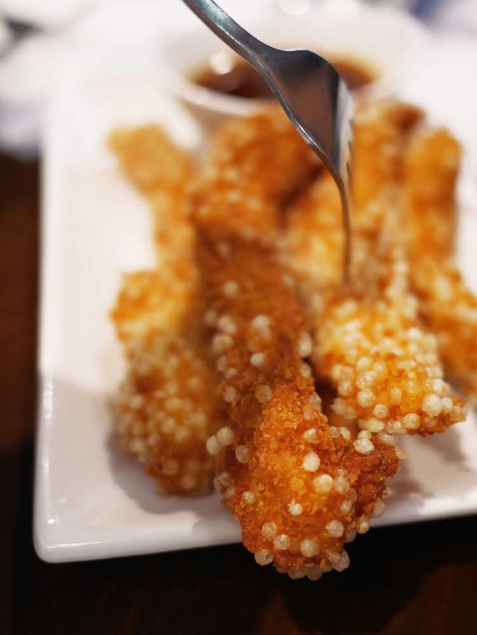 The restaurant serves only a handful of dishes – a sign of its focused specialization. There are three kinds of Kyo Chon’s crispy fried chicken: the original Soy Garlic Sauce chicken (by far my No. 1 choice), the Hot Sauce chicken (a bit too spicy without plenty of beer), and the Honey Sauce chicken (Yummm!) – the former two of which come in different sizes – 10 wings (THB210), 20 wings (THB395), a half chicken (THB260), and a whole chicken (THB480). Don’t stop there: Also order Kyo Chon’s frosty cold beer and give their original Sal Sal chicken strips a try. You won’t find this anywhere else, I promise.