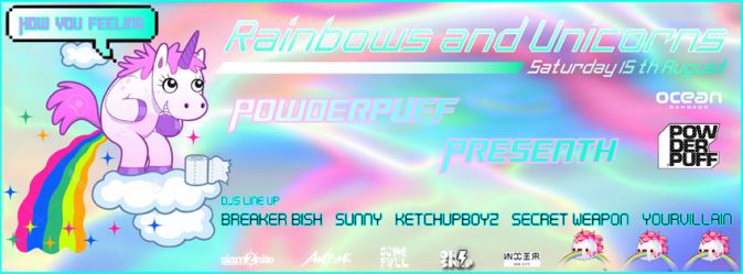 The 2005 animated film, “Barbie and the Magic of Pegasus”, told a tale about a princess who was turned into a unicorn. Inspired by such myths and legends, Powderpuff’s upcoming club night will feature enough”‘Rainbows and Unicorns” glam to make sure you defecate glitter for days.