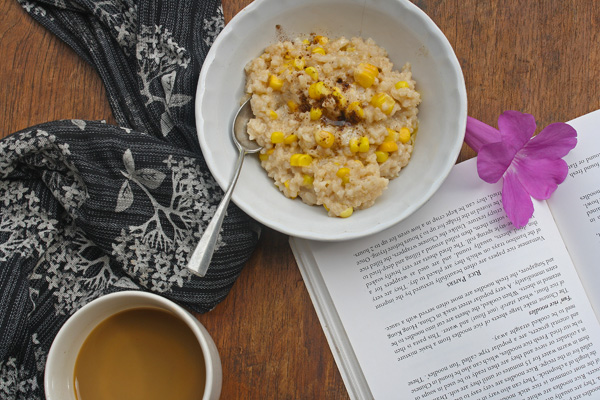 This tropical twist on the ultimate comfort pudding will quickly become a standby recipe for you. By using coconut milk the recipe takes on a divinely sweet and creamy base for rice pudding. The addition of fragrant allspice or really any spice (think cinnamon, nutmeg or pumpkin spice) gives a robust kick to the velvety pudding while a dash of fresh sweet corn brings a layer of texture and natural sweetness to the mix.
