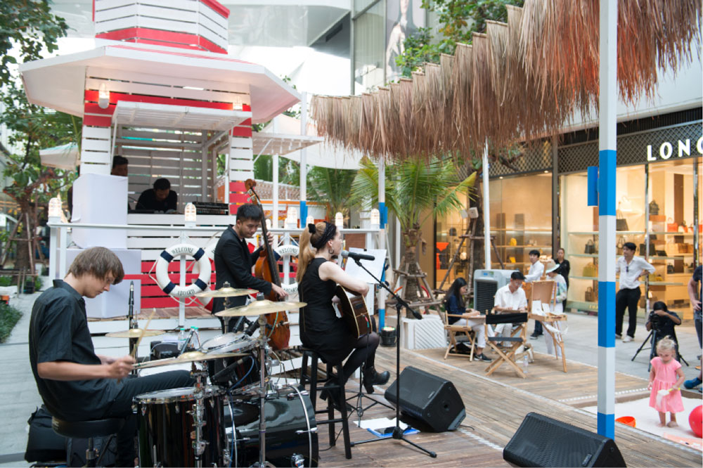Then, head down to the pop space at Quartier Avenue to sip drinks, eat delicious food and experience the beach atmosphere. The beach party kicked off with a special lineup for launch day sponsored by Vogue Lounge. Bangkok’s hippest beach bums experienced fine dining by 3-Michelin starred Chef Vincent Thierry, cool signature cocktails by international award-wining mixologist, sick beats by local DJs and the coolest crowd around. And yes, you can sit with them.