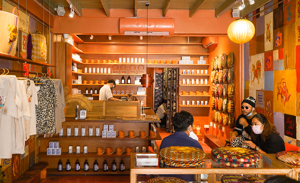 Its vibrant decor includes handmade silkscreens of flowers, tigers and Chinese characters on the walls while in a corner local handicrafts are displayed. The idea was to “empower underdog culture,” according to shop co-owner Saran Yenpanya, an artist who also owns the 56thStudio design house.