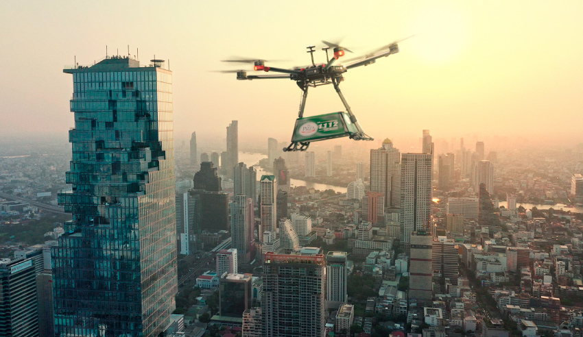Chicken Deluxe, Seafood Cocktail or Tom Yum Goong? Whatever type of pizza you want, even plain old pepperoni, them slices could some day fall from the sky thanks to an autonomous aerial vehicle.