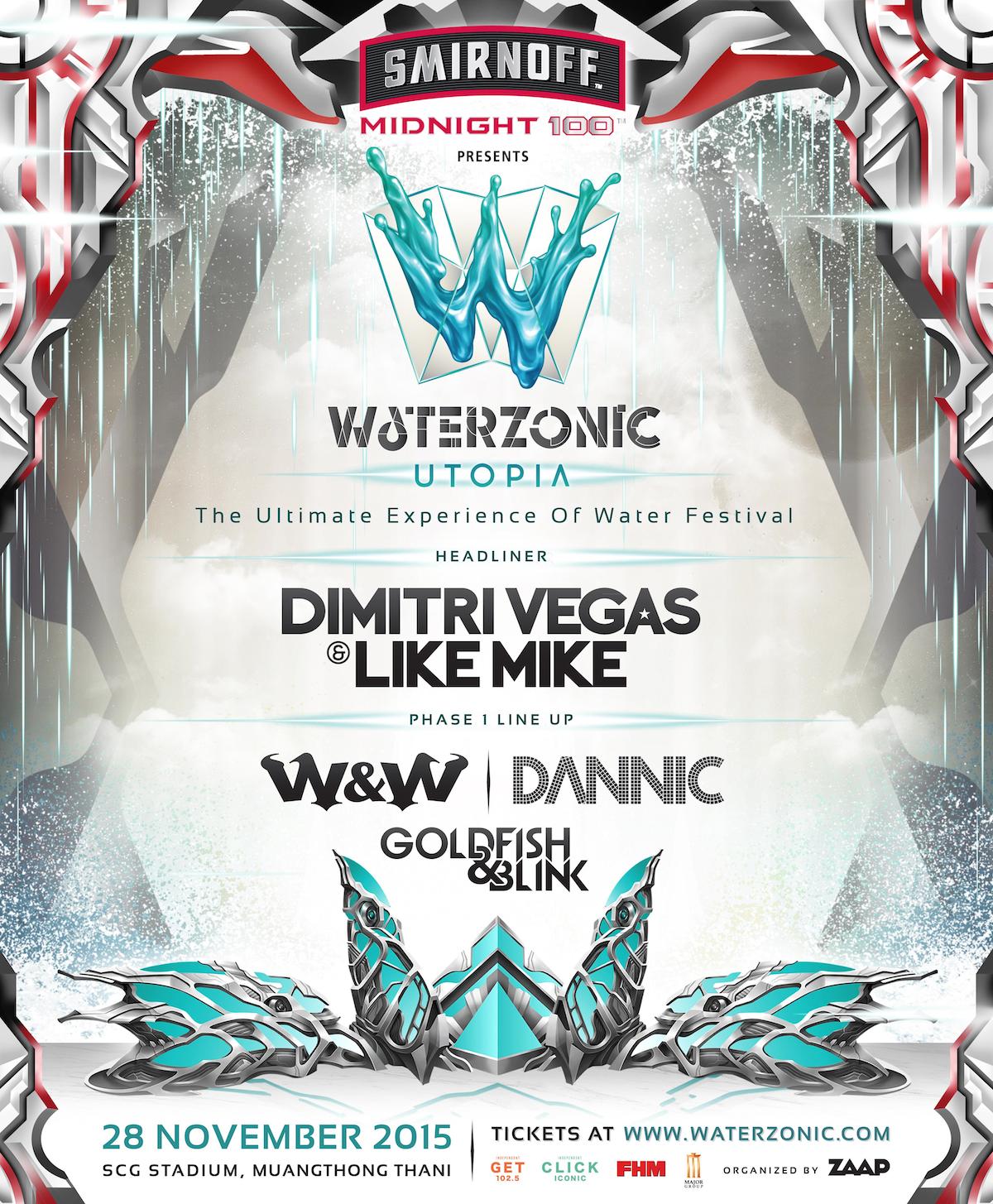 The wild, massive, soaking wet music festival Smirnoff Midnight 100 presents Waterzonic is happening on November 28, 2015 at SCG Stadium in Muang Thong Thani.