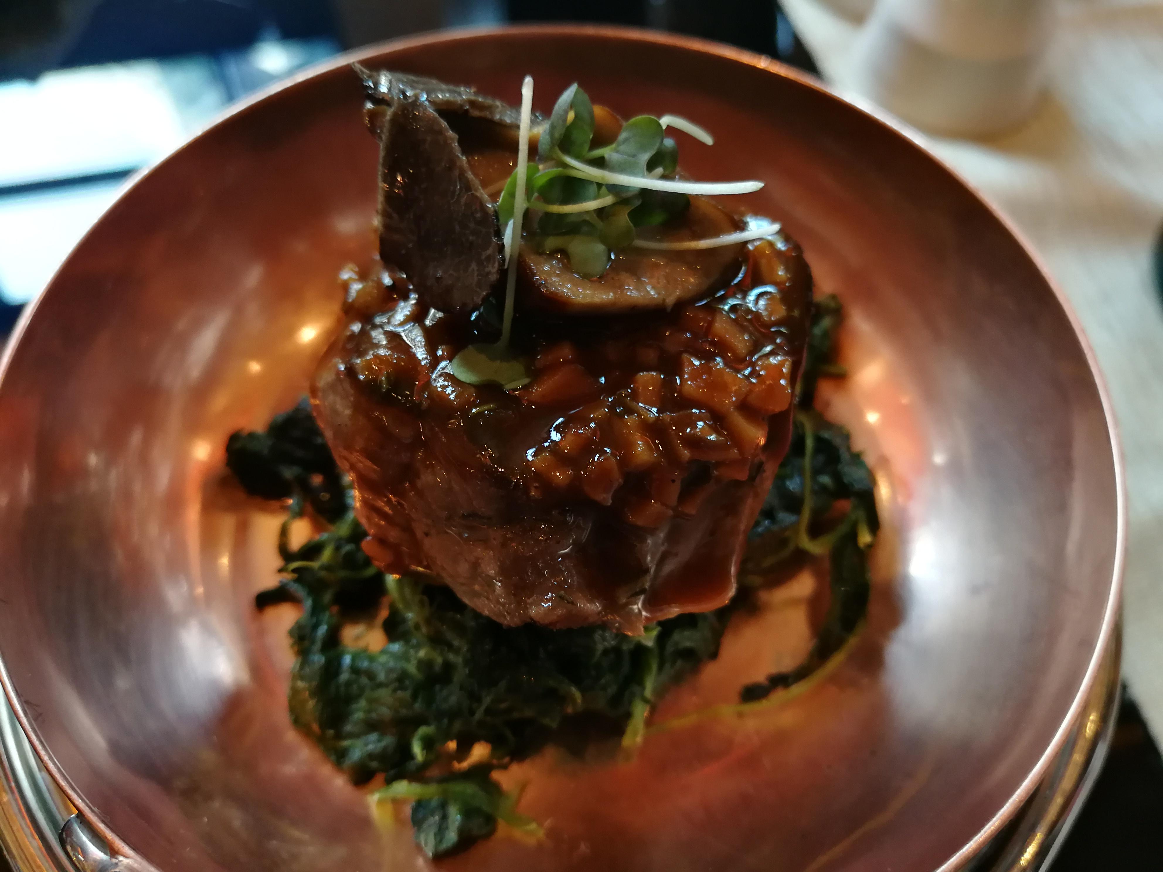 We were especially impressed, however, by two dishes. The Snow Fish with lemon olive oil potato cream and sundried tomato breadcrumbs managed to be super soft yet not falling apart with a pleasant crisp crust and delightful unusual breadcrumbs.