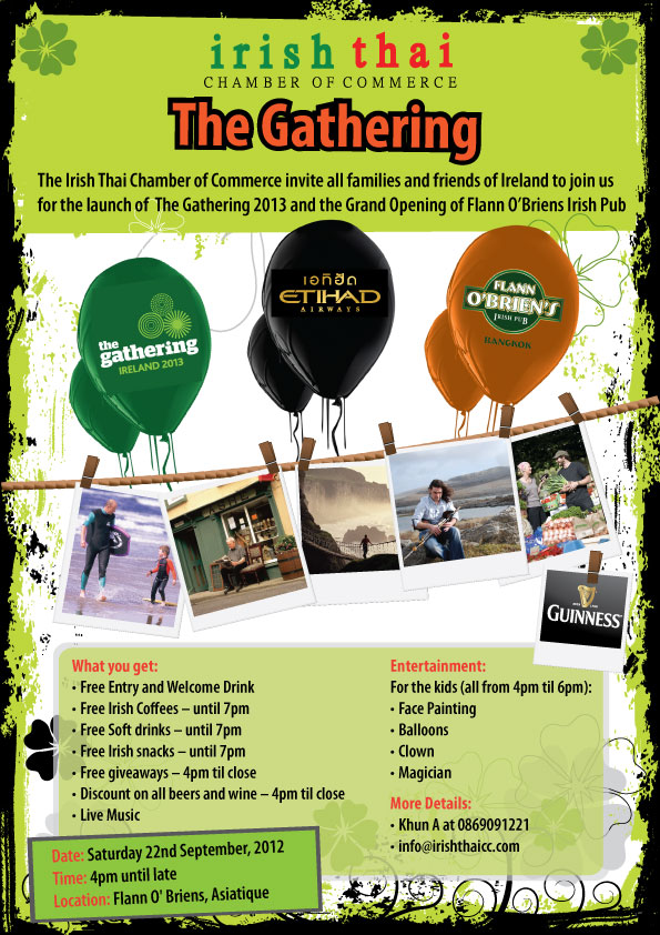 There’s a lot going on here, so we’re going to break it down for you. Firstly, The Gathering is worldwide celebration of Irish heritage that’s all about bringing different Irish clans together to create awareness and celebrate a shared heritage and culture that has been in existence for thousands of years. The ITCC will celebrate with the Bangkok-based Irish clan as other people from the land of Ire celebrate their heritage worldwide. It’s a lot like St. Patty’s day, just without the leprechauns and shamrocks.