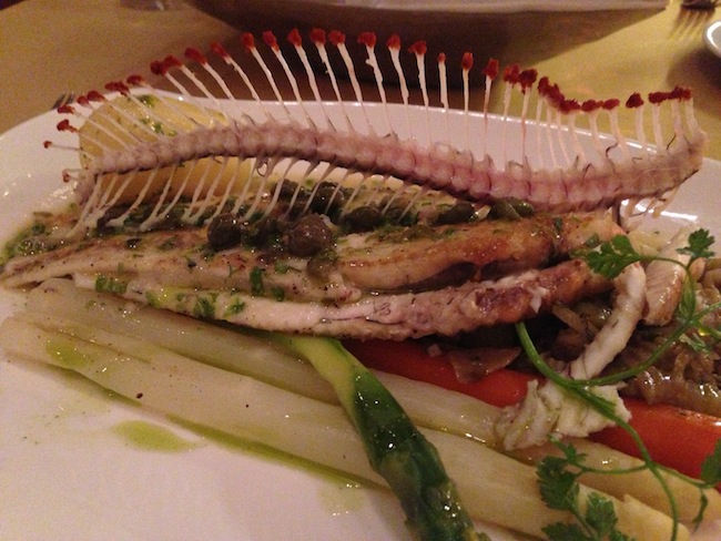 Service was impeccably polite and quick, though we did wonder why we received the shared attentions of at least five different waiting staff through the meal. Were we being passed around, we wondered? We were, I estimate, at least 30% scruffier than the average patron. The wine list was long and full of desirable French labels. (Not that we had the budget to explore them.)