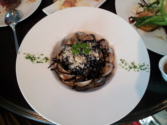 Our final order was the black ink angel hair spaghetti vongole (THB220). The pasta came ringed with still-in-shell clams and aggressively dusted with Parmesan. The presentation was good but we found the noodles to be overcooked. My friend also noted that the taste, while not unpleasant, was reminiscent of Mama noodles. We wondered whether or not that umami flavor had been achieved with MSG.