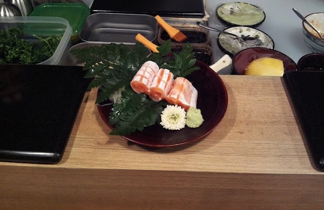 The toro salmon sashimi (THB220) came rolled into three separate pieces. At only THB50 more than the standard salmon, the buttery fish proved quite a deal.