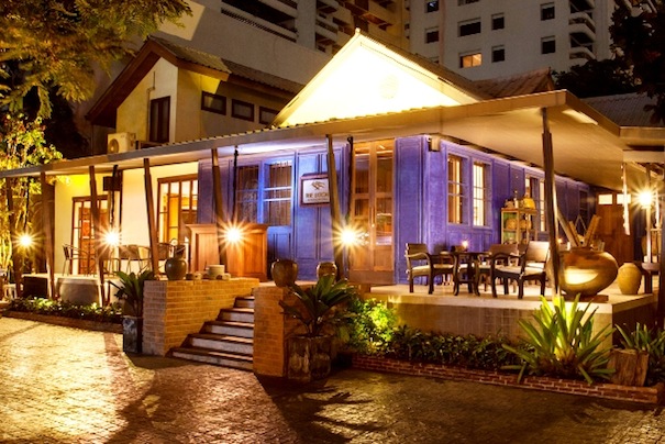 Set in a 70-year-old house – pretty ancient for Sukhumvit – the restaurant exhibits a style I like to call “Ye Olde Siamese Restaurant”. If you have dined at The Blue Elephant, God ‘elp ya, you will be familiar with it. It’s all antiques and teakwood and staff in old-fashioned rustic garb. Ye Olde Siamese Restaurant conjures up a Thailand that never existed, except in certain people’s minds. It’s pleasant enough, if you don’t object too much to being spun a yarn.