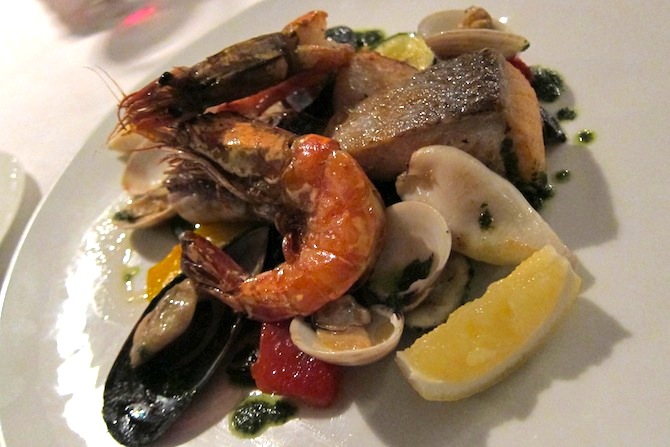 If you’re a pescatarian then the Tonno rosa alla griglia con salsa alle oliv is your best choice, due to the sizable portion of Tuna. For a bit of everything, try the Grigliata mista di pesce, a mix of prawn, Sea Bass, mussels, scallops and a medley of garden vegetables in a simply seasoned olive oil, it’s clean and light, and suited for a palette keen to mild flavors.