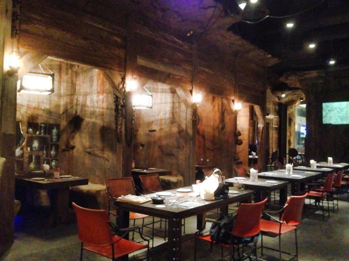 COCONUTS HOT SPOT — Get swept up in Gold Rush fever at a restaurant that will transport you to 1849 California. To step into Tales of the Gold Mine’s lavishly appointed fantasy is to enter a gloomy gold mine decorated with convincing props: massive engine wheels, mining survival kits, and even mining gloves and boots hang from the wall. Dark button-back dining chairs and rich wooden tables go well with the dark tone of the place. To create an even more believable ambience, a short video of early gold mining stories projects on the wall.