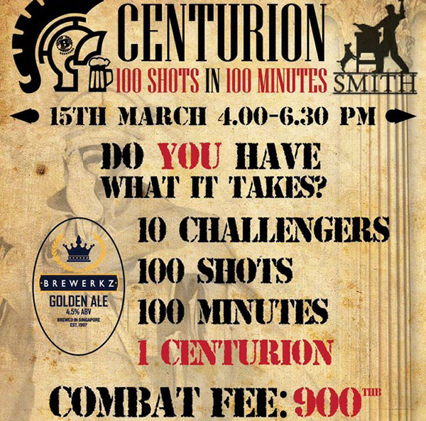 They’ve looking for 10 brave Centurions with a healthy disregard for their liver to down a shot of beer every minute for 100 minutes in a Roman-themed contest.