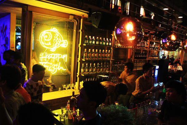 A menu packed with simple Western comfort food and staple Thai food is the backbone of the eatery, although the ample selection of booze certainly wins the hearts of the trendy Thais and farang tourists who frequent the spot. The simple yet diverse approach to food seems to work. You can order some baby back ribs slathered in real barbeque sauce and accompany them with a Budweiser. Or select the seafood linguine and opt for one of the rotating wine specials. The sea life motif painted on the walls, the friendly menu and the location mean that Happy Fish can provide adequate entertainment for a wide variety of patrons. Upon first visiting, you many even think Happy Fish is a family oriented chain restaurant along the lines of Bubba Gump Shrimp Company or Chili’s Bar and Grill.
