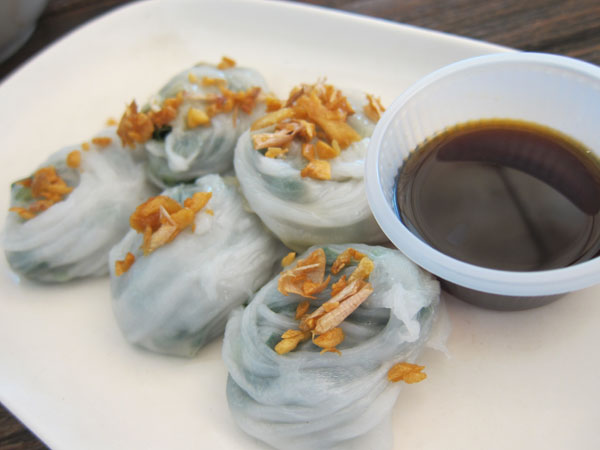 It isn’t all about new flavor combos, though. Nye ngok, the white haired man, pays special attention to recipes from the past. Try some of the nam prik platu to test his allegiance to tradition. This fiery mash of vegetables used to be considered a Thai staple until people decided that the painstakingly long preparation process made it too difficult to serve in our fast-paced society. What especially fits with the whole theme of the restaurant is the boat noodles, kuey teow ruea, their zesty and slightly sweet broth draws such a large crowd during weekend mornings that the venue is usually full.