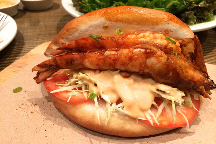 If soft shell crab isn’t your thing, there are plenty of other buns to try in addition to the fried chicken. Like the soft shell crab version, the Shrimp Bun (THB195) is served with coleslaw that cuts the spicy, sweet glazed shrimp.