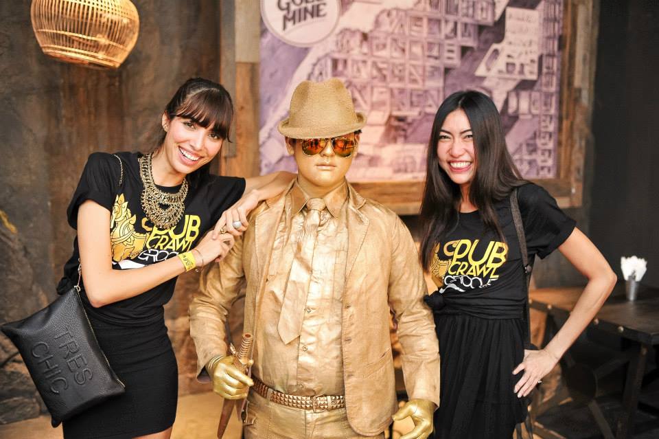 Onward, lions and lionesses of the night. With the crawl in full swing, we sauntered over to Gold Mine where the excitement got kicked up a notch. Gold Mine really is a gold mine. OK, not really, but figuratively, it’s a gold mine… or, let’s say a fun mine. It’s a fun mine (I’m not drunk, I assure you). DJ Dookie, aka Lady Soma, served up some tasty, tasty beats as hot, hot, and golden, golden models roamed the dance floor. Oh, and tasty, tasty food, like the mini orange chicken muntao burger and grilled pork hawaiian skewer. Oh, Oh! And dapper gents entirely made of gold (OK, a little buzzed) mixed with the crowd and made ample opportunity for photo gold. Gold, gold, gold – do you know what else is gold (-en)? Beer. Yep, they had plenty of that too.