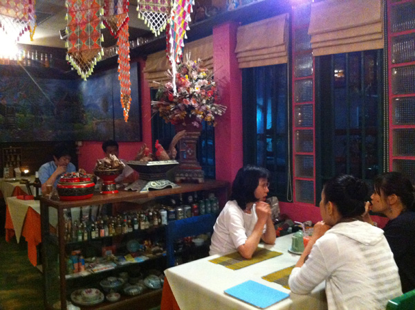 Gedhawa isn’t a new restaurant by any means, but it borders on the unknown, hidden as it is down the barely-lit Sukhumvit 35 with only a wooden sign to trumpet its presence. The restaurant’s loyal following comes for bona fide northern Thai and Isaan cooking in a charming atmosphere. Traditional paintings and drawings cover the walls; the menu itself is reminiscent of a school art project, with glued-on photographs and descriptions neatly handwritten onto cuts of bound cardboard.