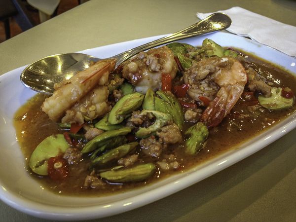 COCONUTS CRITIC’S TABLE — “They’ve turned it up to 11 on the hob of deliciousness.” Silly words, but they came out of my mouth involuntarily during a meal at Khua Kling Phak Sot, a superlative Southern Thai restaurant that, thank Buddha, now has two branches in Bangkok. I love the restaurant on Phahonyothin 8 so much I almost held myself back from writing about it. As things stand, I can always get a seat. But the family who own the place deserve to reap rewards for doing the tastebuds of Bangkok a service, so here you are.