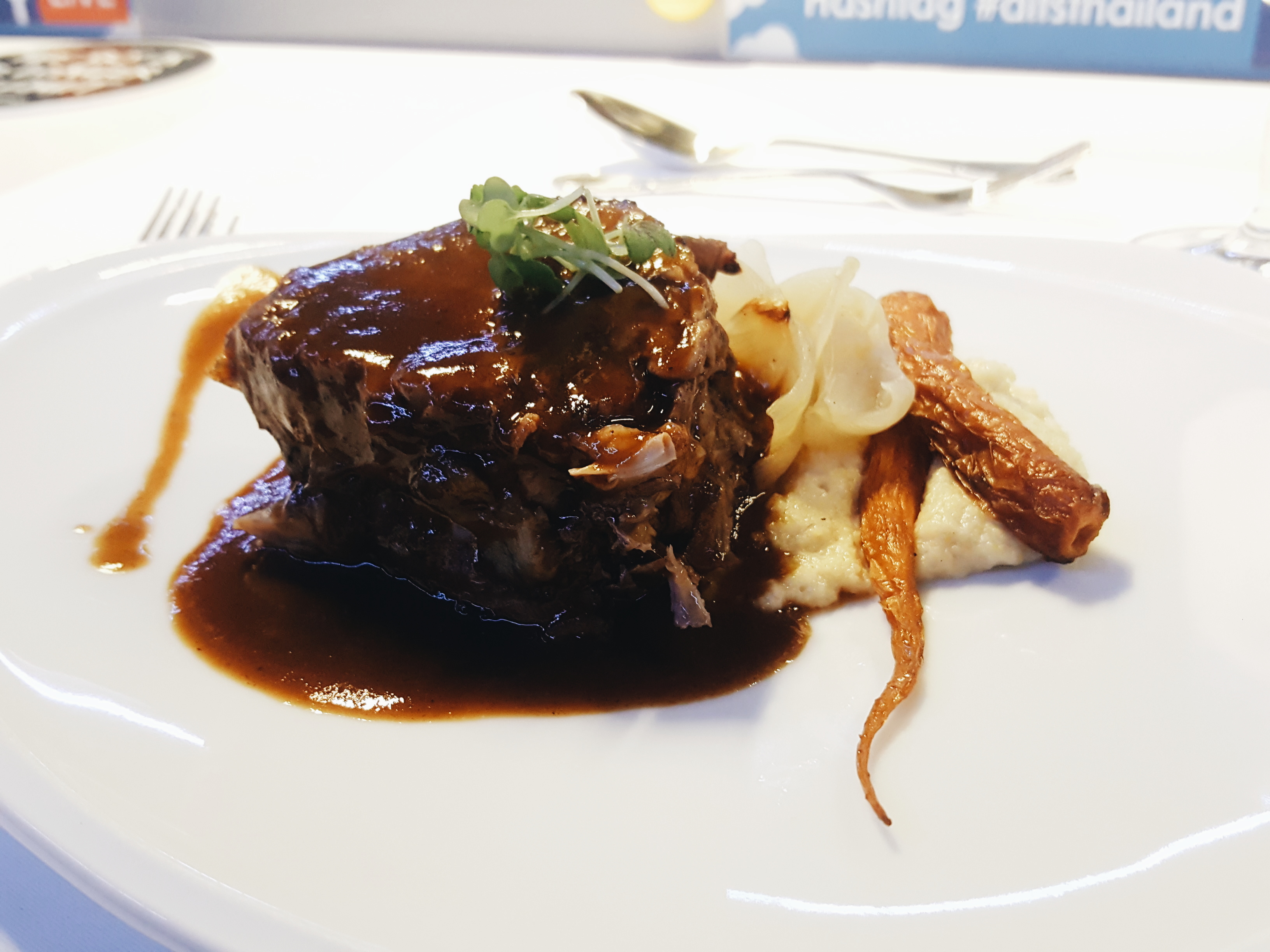 Feel the cool breeze as you hang, suspended in the sky, dining on sauteed asparagus with bearnaise sauce, creamy whipped Spanish baccala’ mantecato with Borlotti beans, and your choice between tantalizing main courses: red wine braised beef short ribs, pan fried butter fish with topinambour sauce, or juicy 12-hour braised lamb shoulder with onion and soft truffle polenta. The perfect finishing touch is coconut, chocolate and raspberry sherbet; a refreshing end to a spectacular experience.