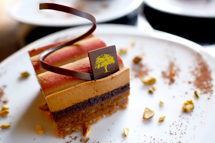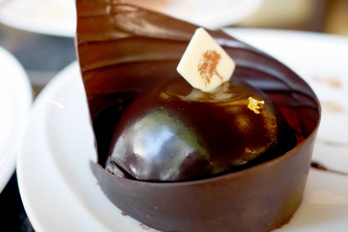 The pastry selection also contains iconic items that I remember previously enjoying at the Langsuan café. The Volute (chocolate dome — THB155) is still a star of the menu and the Concerto (THB155) has the same spikey chocolate flower on top. I chose Volute, and it didn’t disappoint. Multiple intricate layers that make up this rather simple looking chocolate cake justifies its pricing. The many different layers of mousses, cake, feuilletine flakes, and whatever other magical ingredients, add up to give several dimensions of texture. If I were this cake, I would be offended to be called “just a chocolate cake.”