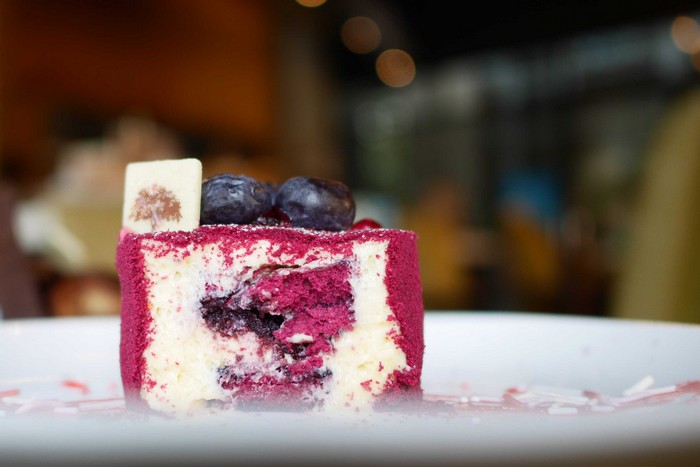 My new favorite is probably Venus (THB155), a fancy looking purple cake. I was told it was a fluffy and light mousse-like cake; I wasn’t told a delicious blueberry jelly filling would ooze out from its center. It was coated with buttercream and some unknown ingredient that makes the piece look like it’s covered in purple snowflakes. Doesn’t that already tempt your sweet tooth?