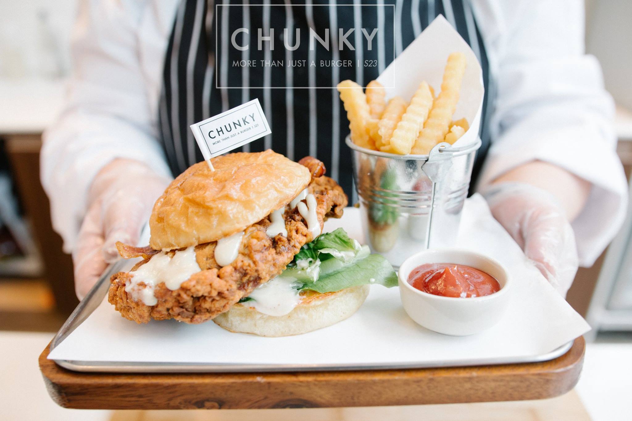 Chunky also has other beef burgers to try. The Chunky Beef Burger is made with Australian beef patty, cheddar, sauteed mushrooms, an onion ring, and their secret sauce. All burgers are served with their homemade brioche buns. You can add an extra fried egg or cheese if you’d like.