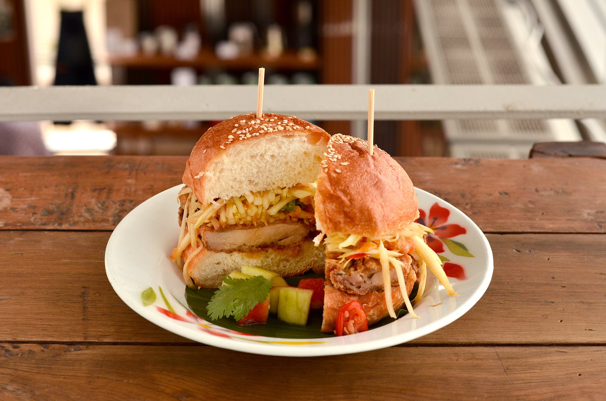 Soul Food 555 is the epitome of hipster food. It uses Australian beef to make a simple dish such as pad kaprow and charges THB300 for it, but what caught our eye is their “Thailand Sandwich” menu which features three really Thai burgers.