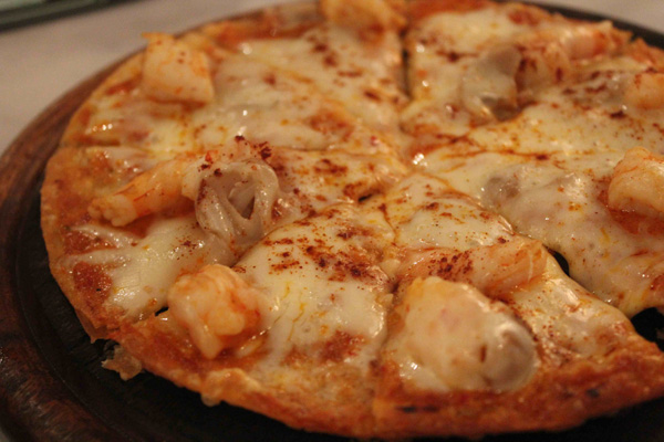 The baby crusty pizzas offer a good choice for lighter fare. Audrey’s tom yung koong pizza (THB190) employs an herbal cream dressing reminiscent of vodka sauce with an infusion of ginger and galangal, as well as a significant topping of peeled shrimp and mushrooms. This fusion pizza forms the menu’s most creative, and successful, entry. Outside of this highlight, the Western food seemed hit-or-miss. The grilled crusted salmon drizzled with a butter and lemon sauce was done right, but the calamari (THB230) turned out dry and rubbery.