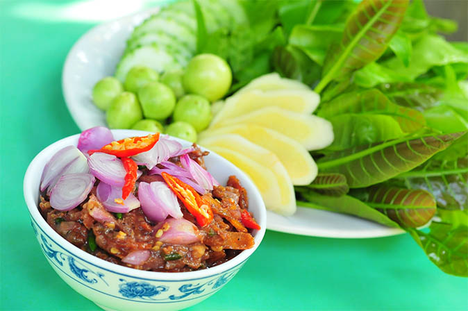 Nam prik goong sieb (grilled shrimp chili dip), a Phuket specialty that goes well with sataw. Photo: Phuket City