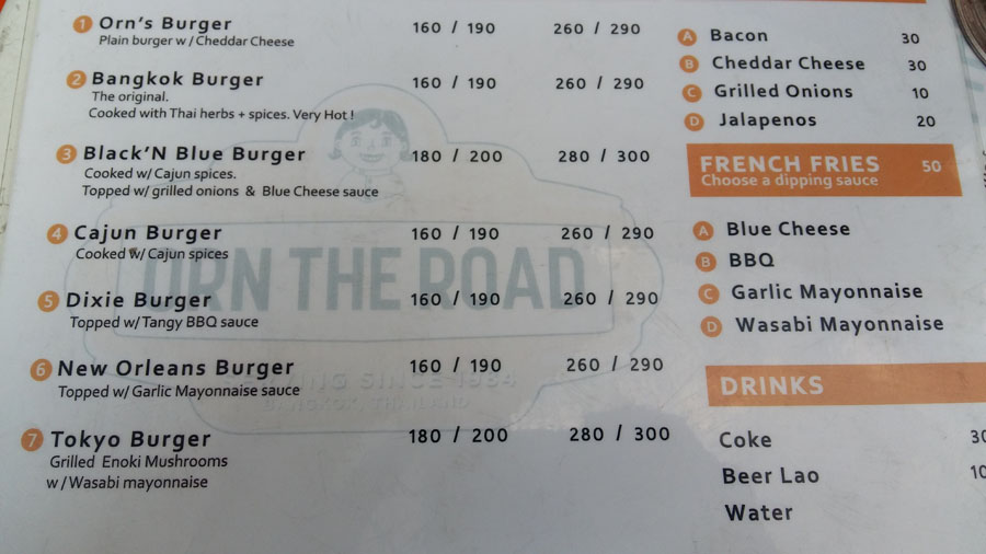 There are two “quality” options between the burgers: the “standard” (THB160) or “premium” (THB 260) which begs the obvious question “what’s wrong with the standard?”