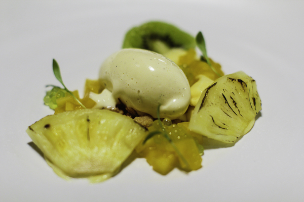 The second and third courses continue the emphasis on experimental ingredients, like the pipquino found in the second course. The Salmon dish features tiny watermelon-like fruits from South America and the third course, the tiger prawn and mentaiko capellini, utilizes kombu, a Japanese seaweed that is supposed to deliver the elusive “umami” flavor.