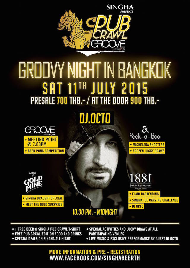 Nobody does a pub crawl like Singha, and the brand is going all out with this month’s “Groovy Night in Bangkok” where hotspots Hyde & Seek Peek-A-Boo, Gold Mine, and 1881 by Water Library are coming together for one epic night of bar hopping. If you’re like us, you’re going to want to grab your favorite drinking buddies and head to GROOVE Central World where Bangkok legend DJ Octo will be headlining.