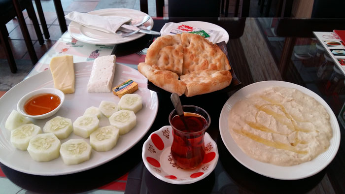 Most notable for anyone who’s been to Turkey is the Turkish Breakfast place (THB180). The set comes with sliced tomato, cucumber, olives, sheep’s milk cheese, emmental cheese, honey and freshly baked pide, or Turkish flatbread.