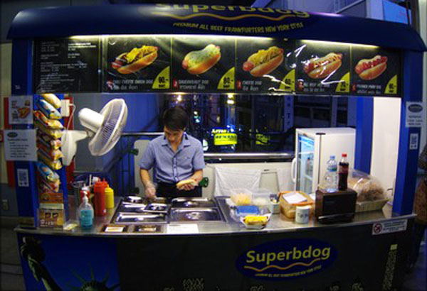 When expat Jim Seymour came up short in his quest for the perfect hot dog in Bangkok he set out to make his own, and the NYC-themed Superbdog is the result of his efforts. The little stall on the BTS Nana platform could pass for a hot dog cart on a Times Square street corner, and his new Thong Lor location, with yellow and white walls, feels like the inside of a giant hot dog.