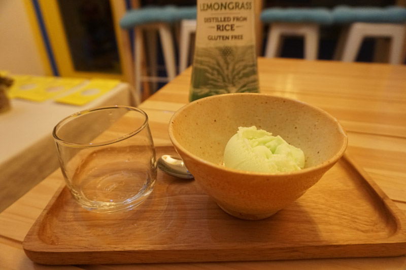 I went with their recommended sets, which included a half shot of booze that the bartender had pre-matched with an ice cream. I tried Kan Kluay Mao Vodka (THB220), which is named after the war elephant in the Thai cartoon “Kan Kluay.” The set comes with 15 millimeters of Kai lemongrass vodka with vodka-based ice cream.
