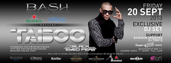 Taboo, a member of The Black Eyed Peas and a global DJ sensation, will bring a heart-stopping performance to BASH Bangkok on Sept. 20.